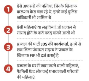 प्रज्वल पर आरोप है कि उसने महिलाओं को अलग-अलग तरह का लालच देकर सेक्शुअल फेवर लिया। किसी को सब-इंस्पेक्टर, किसी को तहसीलदार तो किसी को फूड डिपार्टमेंट में नौकरी दिलवा दी। सेक्स स्कैंडल केस फिलहाल कोर्ट में है। 150 गवाह हैं, जिनके बयान दर्ज किए जा रहे हैं, लेकिन प्रज्वल को सजा कब होगी, ये सवाल बाकी है
