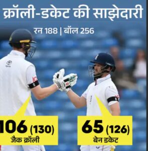 फैक्टर-5: क्रॉली-डकेट की रिकॉर्ड साझेदारी इंग्लिश टीम के बल्लेबाजों ने शानदार प्रदर्शन किया। टीम से बेन डकेट और ओली पोप ने शतक लगाए। हैरी ब्रूक ने 99 रन बनाए। दूसरी इनिंग में इंग्लिश ओपनर्स जैक क्रॉली और बेन डकेट ने 188 रन जोड़े। यह निर्णायक साझेदारी साबित हुई। दोनों ने इंग्लैंड के लिए चौथी पारी में अब तक की दूसरी सबसे बड़ी ओपनिंग पार्टनरशिप की।