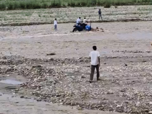 यूपी में मानसून जमकर बरस रहा है। सहारनपुर में बारिश से पहाड़ी सहरसा नदी में बाढ़ आ गई। पुल के ऊपर से पानी तेजी से बह रहा है। एक ट्रैक्टर नदी पार करते समय फंस गया। लोगों ने रेस्क्यू कर ट्रैक्टर पर सवार तीन लोगों को सुरक्षित बाहर निकाला।