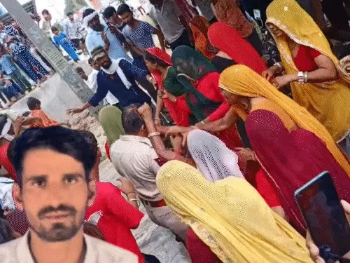 सड़क पर शव रखकर प्रदर्शन कर रहे लोगों को समझाने गई पुलिस को दौड़ा-दौड़ाकर पीटा गया। महिलाओं ने तो एक कॉन्स्टेबल को घेर लिया। उसके बाल खींच-खींचकर थप्पड़ बरसाए। बमुश्किल वह उनके चंगुल से निकल पाया। मामला टोंक के देवली इलाके का है।
