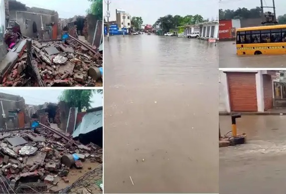 राजस्थान के झुंझुनूं जिले में हुई तेज बारिश ने लोगों की जान पर आफत बनकर कहर बरपाया। जहां एक ओर सड़कें दरिया बन गईं, वहीं दूसरी ओर एक कच्चा मकान भरभराकर गिर पड़ा, जिसमें एक 36 वर्षीय महिला की दर्दनाक मौत हो गई, जबकि एक युवक गंभीर रूप से घायल हो गया। उधर, बरसात का कहर इस कदर था कि बच्चों से भरी स्कूली बस घुटनों तक भरे पानी में फंस गई, जिससे कुछ देर के लिए अफरा-तफरी मच गई।