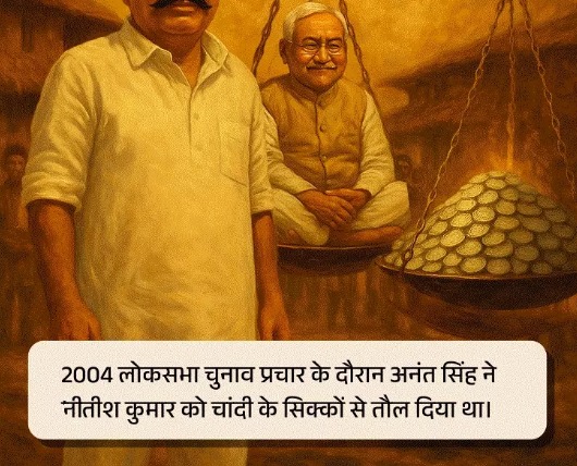 2004 के लोकसभा चुनाव में प्रचार के दौरान बाढ़ में एक जनसभा की गई। इस दौरान अनंत सिंह ने नीतीश कुमार को चांदी के सिक्कों से तौल दिया। इसका एक वीडियो भी उन दिनों कई मीडिया चैनलों ने चलाया।