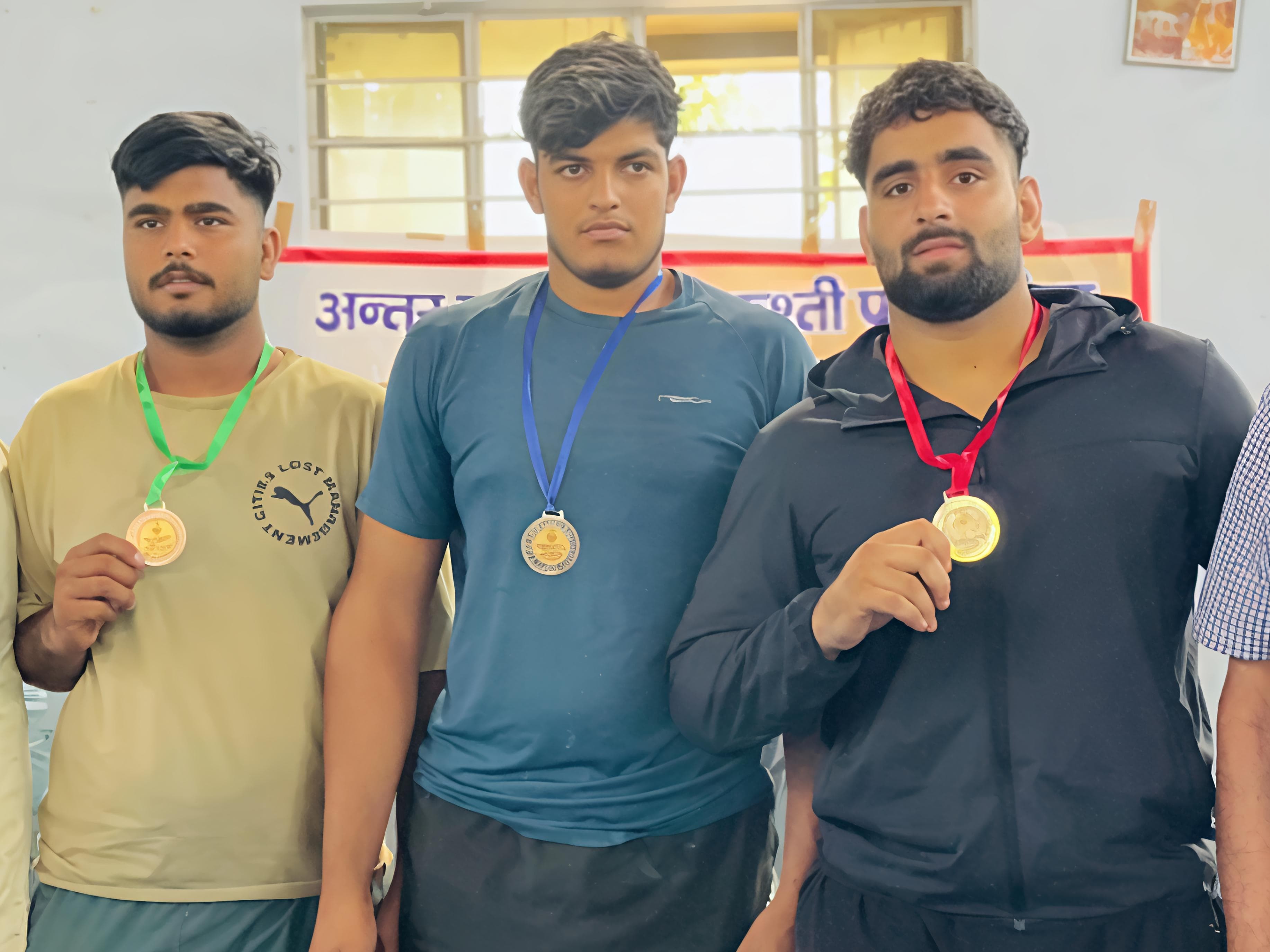 कॉलेज के प्राचार्य डॉ.प्रताप सिंह शेखावत ने बताया-सोयम सिंह ने 130 किलोग्राम श्रेणी में गोल्ड मेडल, रामपाल ने 86 किलोग्राम श्रेणी में सिल्वर मेडल और अरमान सिंह ने 92 किलोग्राम श्रेणी में ब्रॉन्ज मेडल हासिल किया।