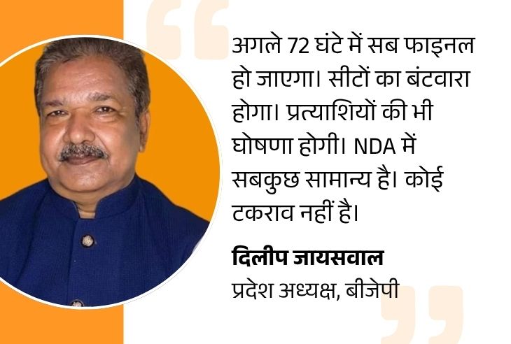 हालांकि बीजेपी की ओर से बार-बार यही कहा जा रहा है कि गठबंधन मजबूत है। जल्द फैसला हो जाएगा। बताया जा रहा है कि 13 अक्टूबर NDA प्रत्याशियों की पहली लिस्ट आ सकती है।