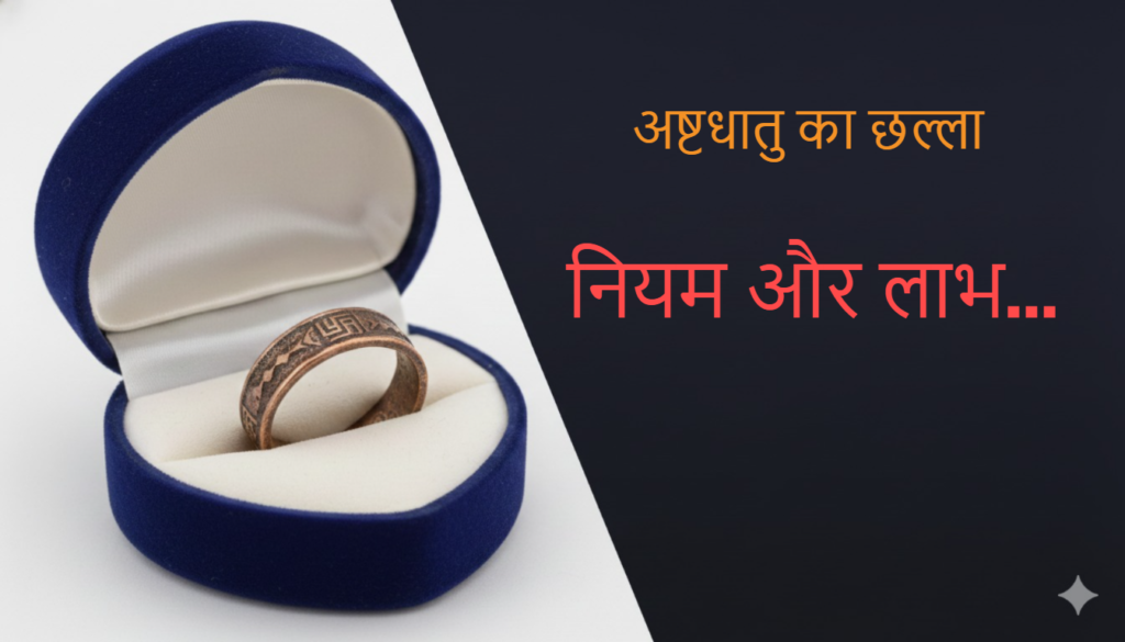 рдЕрд╖реНрдЯрдзрд╛рддреБ рдХреЗ рдЫрд▓реНрд▓реЗ рдФрд░ рдЕрдВрдЧреВрдареА рдХрд╛ рдЬреНрдпреЛрддрд┐рд╖рд╢рд╛рд╕реНрддреНрд░ рдореЗрдВ рд╡рд┐рд╢реЗрд╖ рдорд╣рддреНрд╡ рд╣реИред рдпрд╣ рдЖрда рдзрд╛рддреБрдУрдВ тАУ рд╕реЛрдирд╛, рддрд╛рдВрдмрд╛, рдкреАрддрд▓, рдЪрд╛рдВрджреА, рд╕реАрд╕рд╛, рд▓реЛрд╣рд╛, рдХрд╛рдВрд╕рд╛ рдФрд░ рдЬрд╕реНрддрд╛ тАУ рд╕реЗ рдмрдирд╛ рд╣реЛрддрд╛ рд╣реИ, рдЬрд┐рдирдореЗрдВ рд╕реЗ рд╣рд░ рдзрд╛рддреБ рдХрд┐рд╕реА рди рдХрд┐рд╕реА рдЧреНрд░рд╣ рд╕реЗ рдЬреБрдбрд╝реА рд╣реЛрддреА рд╣реИред